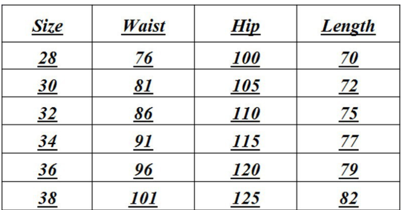 Size: 28, 30, 32, 34, 36, 38
